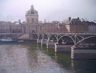 a topic around the Bridge Arts in an atmosphere slightly spring. A little sun .. but not enough! 35x27 cms. / A subject about Pont des Arts in a Slightly spring atmosphere. A little bit more sun .. but not enough! 13.8 x10, 6 inches.